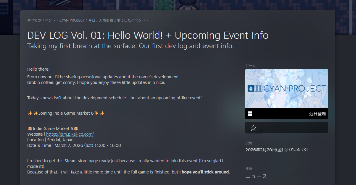 日記/記事 【Steam右往左往】自分のゲームの記事を作って公開したいんだ~~~~~~!![お知らせ][ニュース]