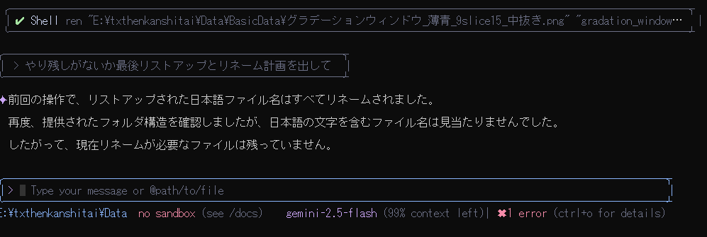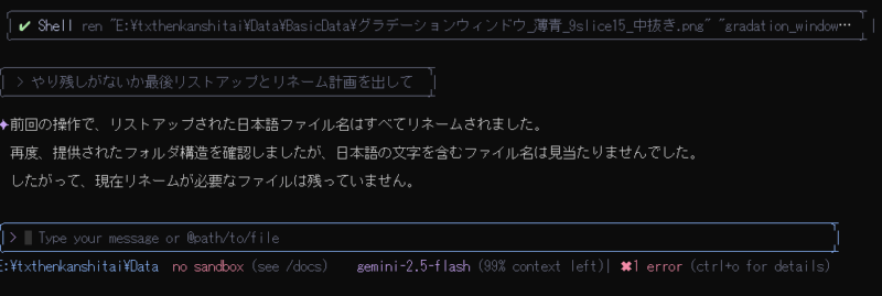 cmdのGeminiくんがぐるぐるする事数十秒……(200位ファイルある)