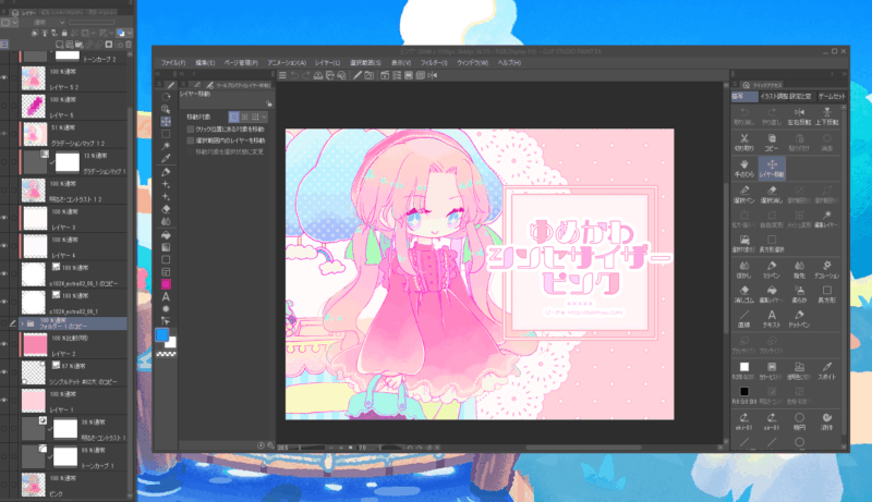 (最初に下敷きにされているのはびーみゅさんに過去にご依頼いただいた時のもので、キャンバスの比率ミスを避ける&タブレットで数字入力したくなかったので使っています)