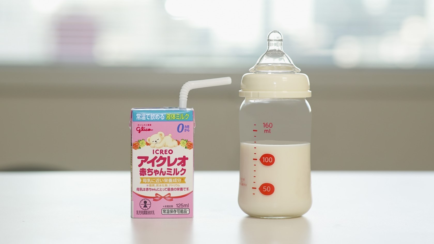 で、粉ミルク……熱湯用意しないといけないし、溶かした後冷やさないといけないし、めんどくさいね。
