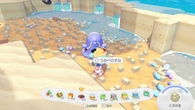 しっくいの壁が使いたくて無限に貝を集めるメタモンと荷物持ちのマルノームさん。